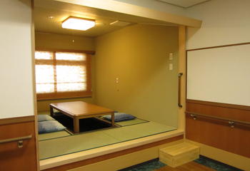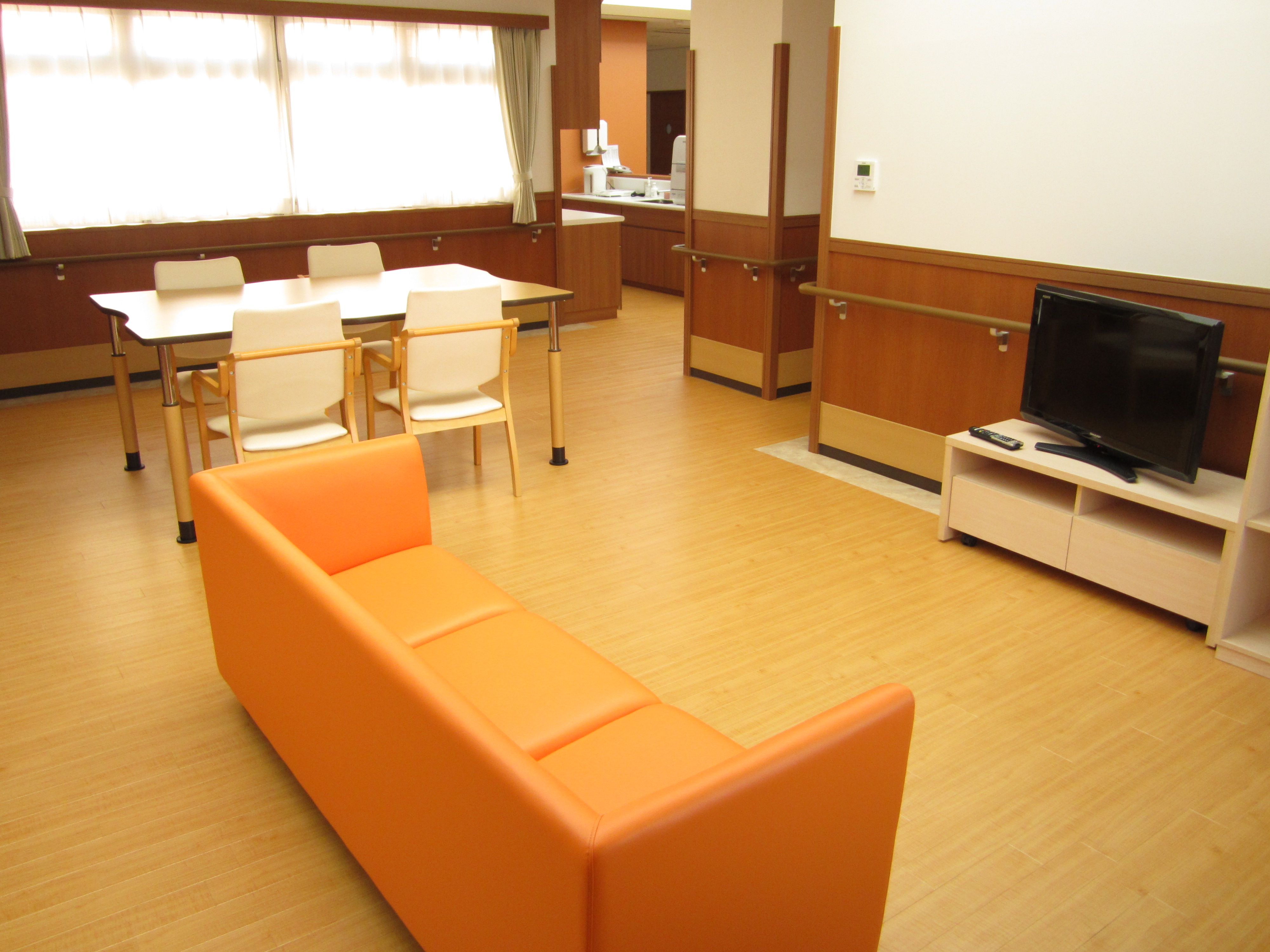 日中はこちらの共同室でテレビを鑑賞をしたり、読書をするなどして、自由に過ごしていただくことができます。家庭でいう茶の間のような場所です。