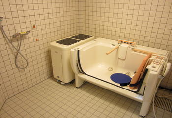 各階の南棟、北棟には写真のような機械個浴と一般の家庭にあるような浴槽(個浴)が配置されており、入所者様の身体機能に応じた入浴方法で安全に入浴していただきます。