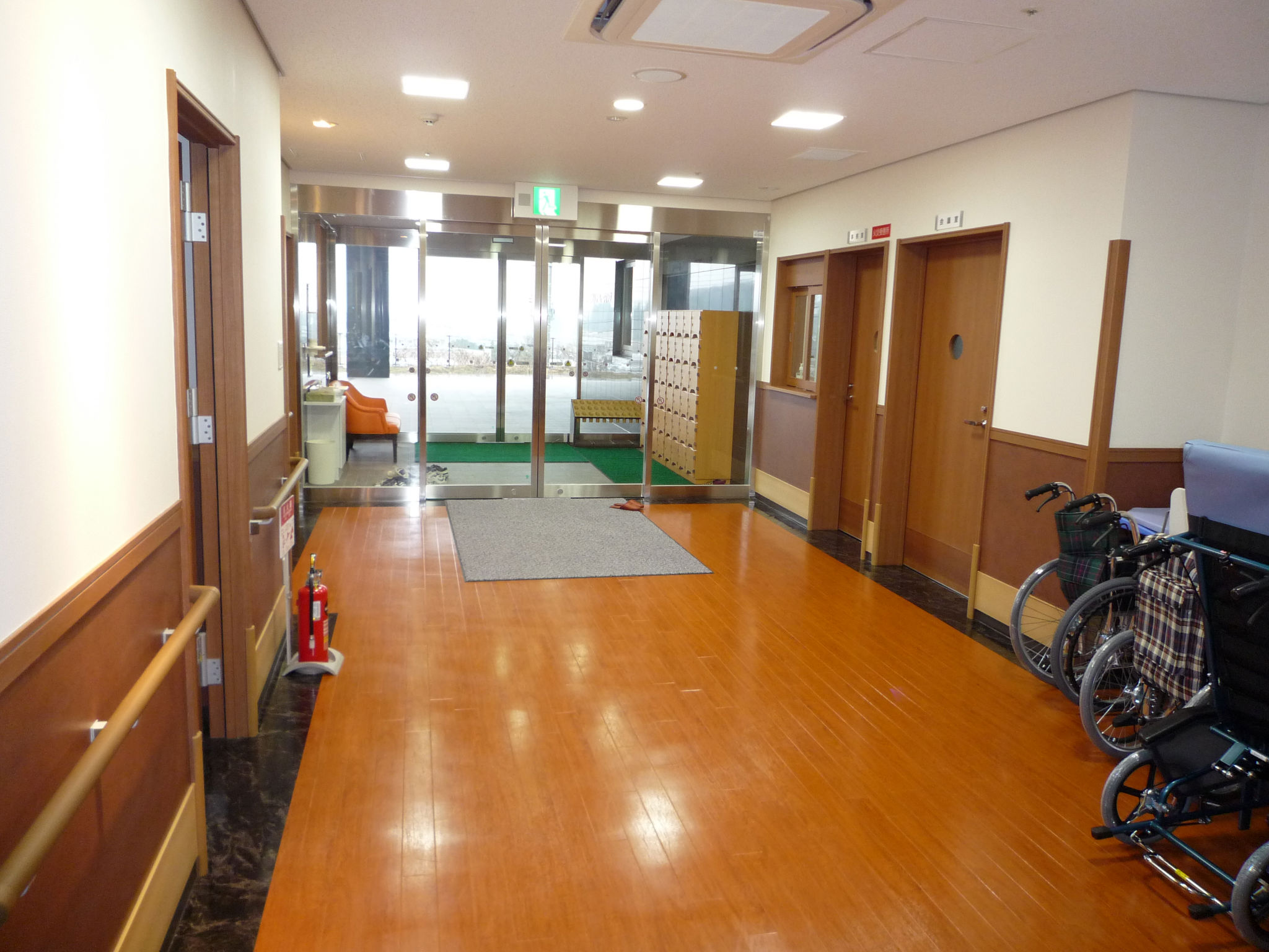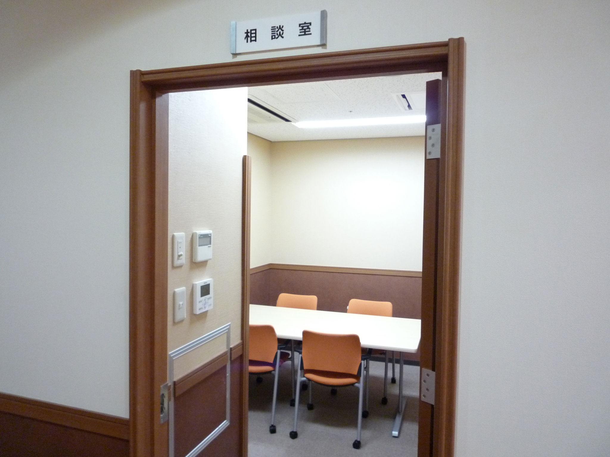 「事務室からホールへ続く廊下の脇に相談室があります。