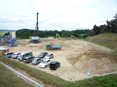 23年8月8日 杭打ち重機組立て中